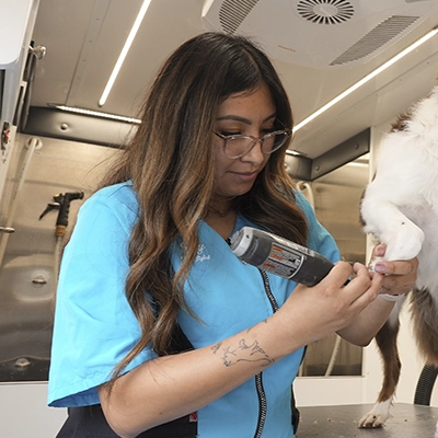 On your groom day, your groomer arrives in a fully equipped, climate-controlled grooming unit. All you do is bring your dog outside—we handle the rest.